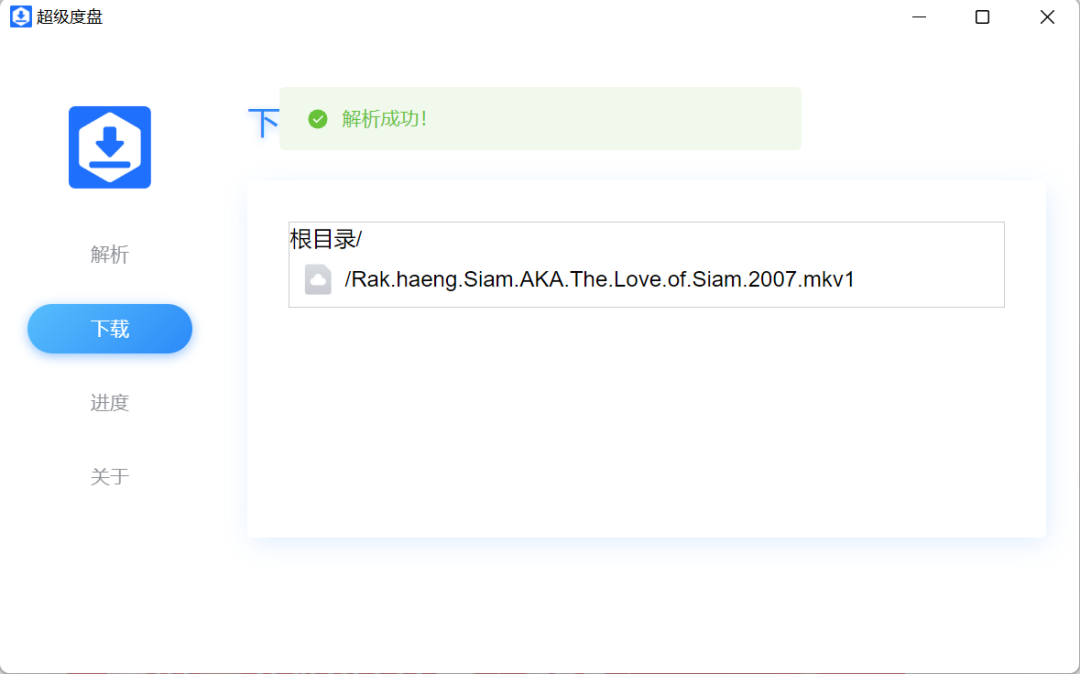 解析完成后,页面会自动跳转到下载页面,并显示当前资源的名称信息。