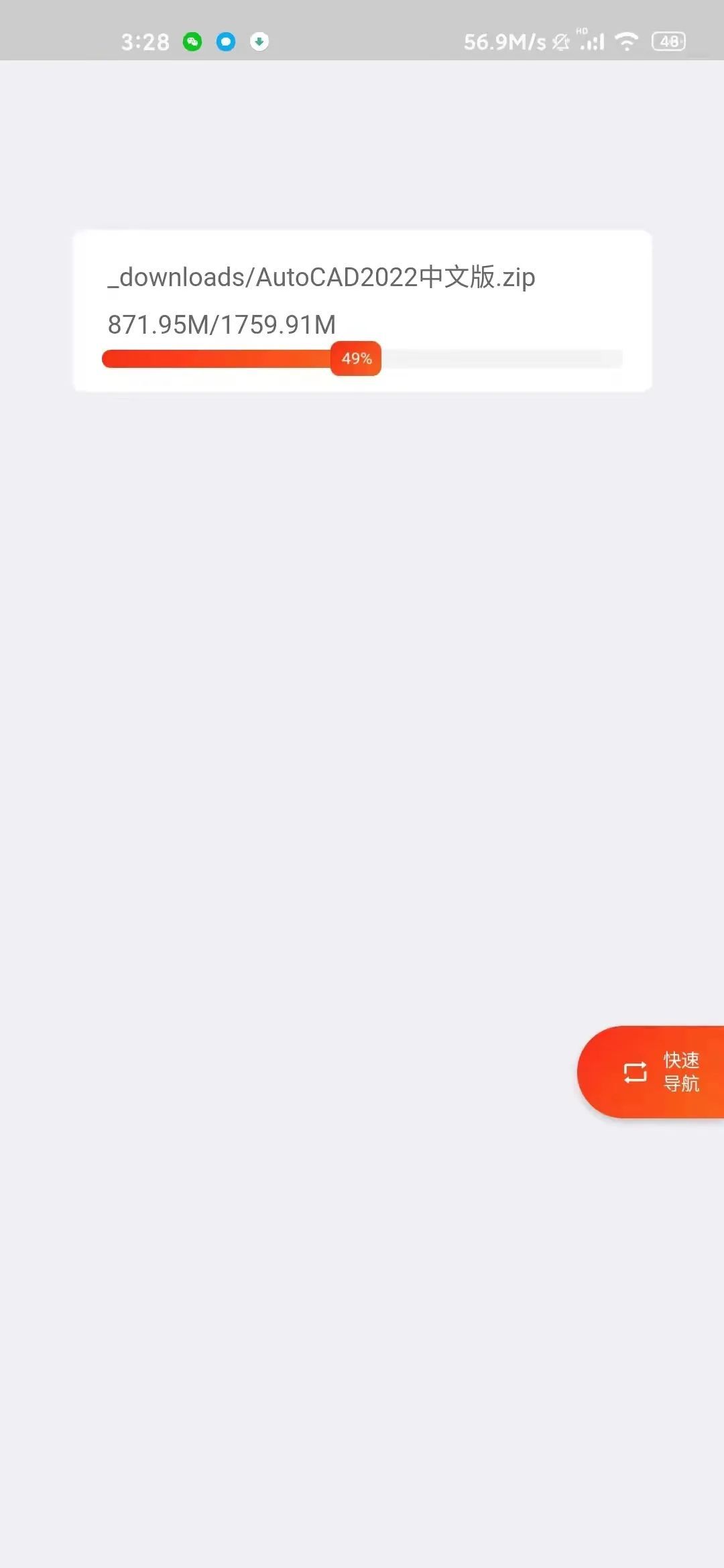 点击进入进度页面,可随时查看下载任务的完成进度。