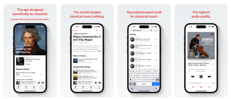 据介绍,应用还提供完整精准的元数据,以及数百个精心策划的播放列表,用户可以根据作曲家、作品、指挥家搜索查找曲目。