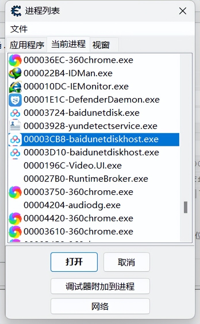 在当前进程列表里,找到百度网盘 baidunetdiskhost.exe 进程,这一进程有两个,随机选择其中一个打开。