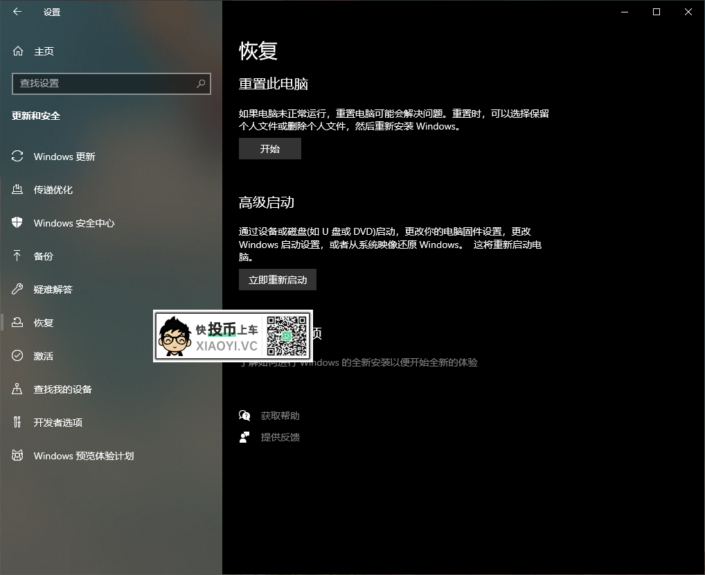 4.快捷键Win+X,设置 → 更新与安全 → 恢复 → 立即重启。