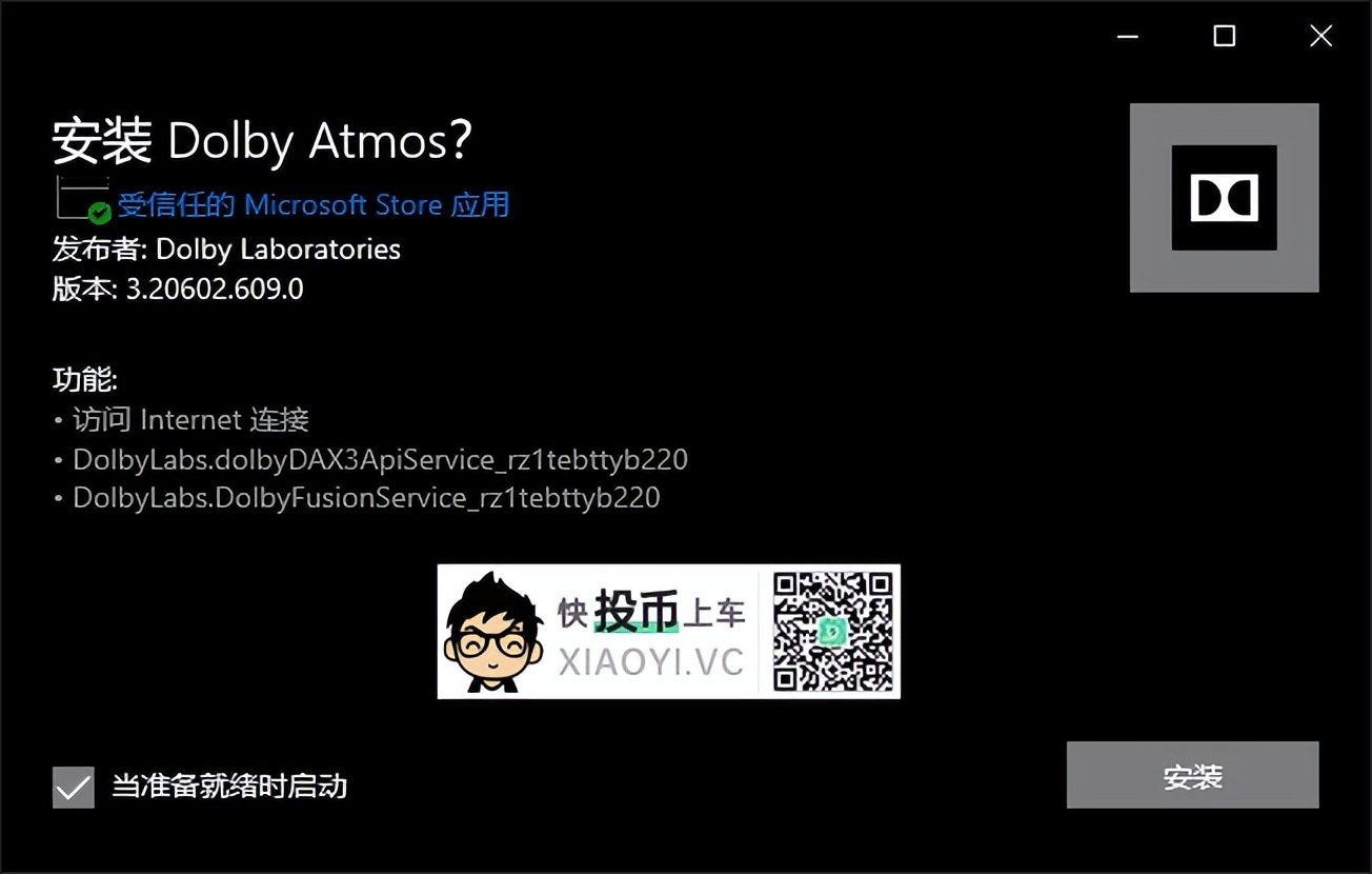 7.安装「dolby Atmos」程序,直接双击运行,然后点击安装,耐心等待就行了。