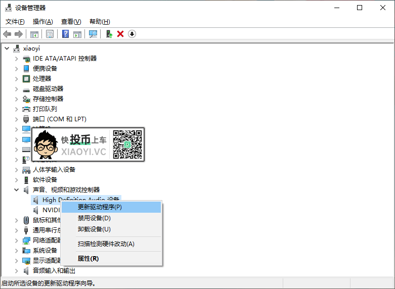 3.安装「dolby Atmos」的驱动程序,解压驱动包文件,然后快捷键Win+X → 设备管理器 → 右键你的声卡驱动,点击 “更新驱动程序”。