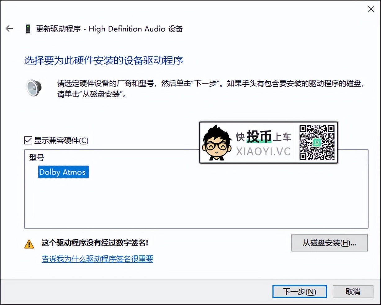 6.会显示 “Dolby Atmos” 的驱动型号,直接下一步安装就可以了。