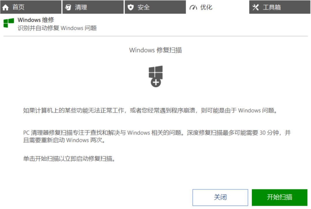 另外,软件还带了一个Windows自动修复的功能,如果电脑经常软件停止运行或系统崩溃啥的,可以使用这个修复功能来碰碰运气,它会重启两次,第一次重启会调用系统功能检查存储设备时候有错误,然后会检查系统组件。