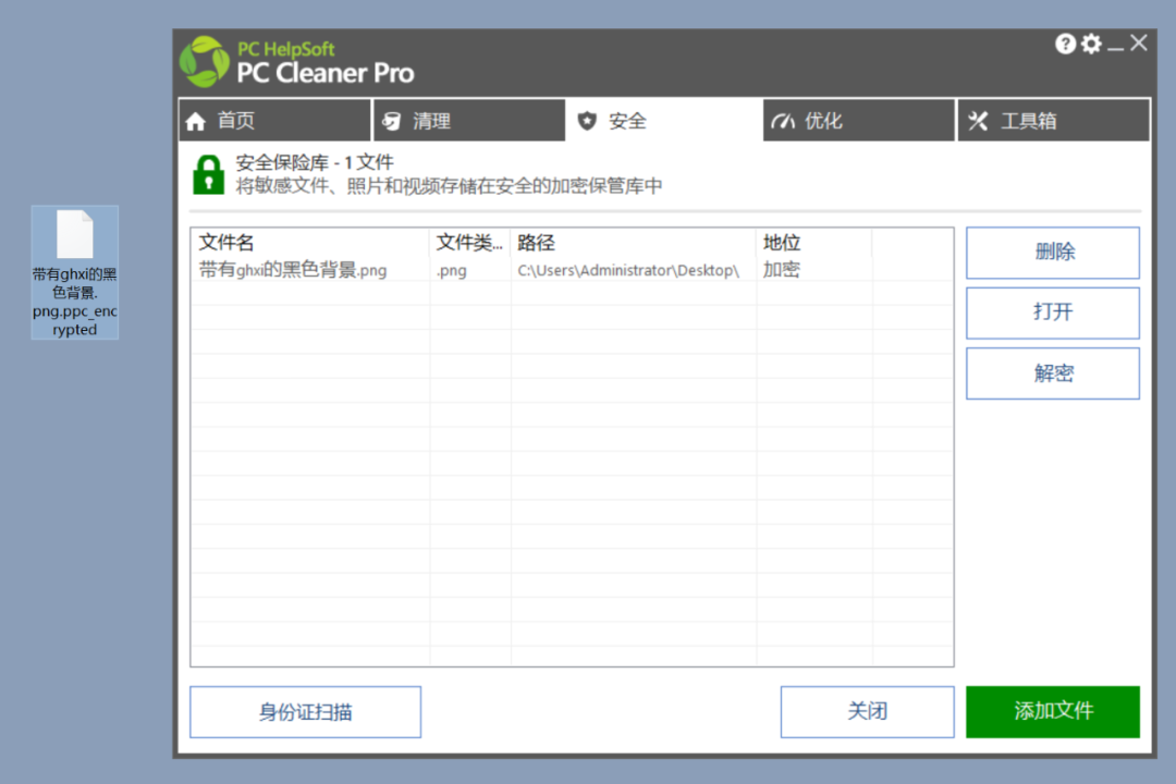 这软件甚至还带有一个文件保险箱的功能,它可以设定一个密码来加密文件,加密后的文件后缀会改变成ppc_encrypted,其他软件打开文件都会提示数据错误。
