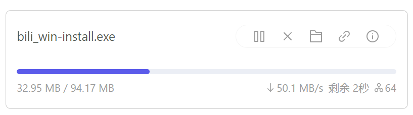 找个日常下载的资源来试一下,就拿这个B站的客户端试试,能到40-50M一秒,瞬间就下好了。