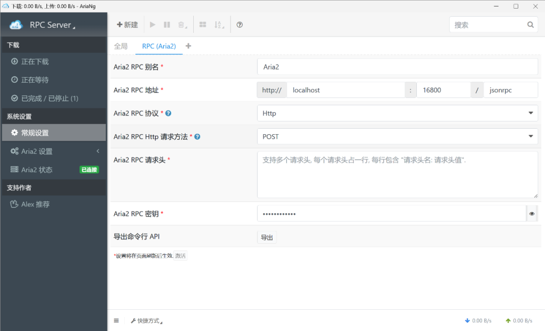 配置浏览器插件的时候,建议从这里配置,从“打开AriaNG”按钮进的话,后续配置浏览器设置会被覆盖。