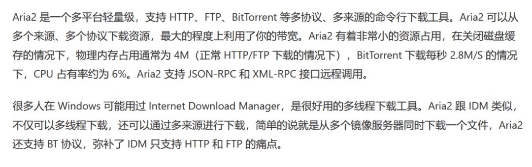 关于aria2,网上有个比较直观的介绍,解决了另一个好用的下载工具IDM的一些痛点。