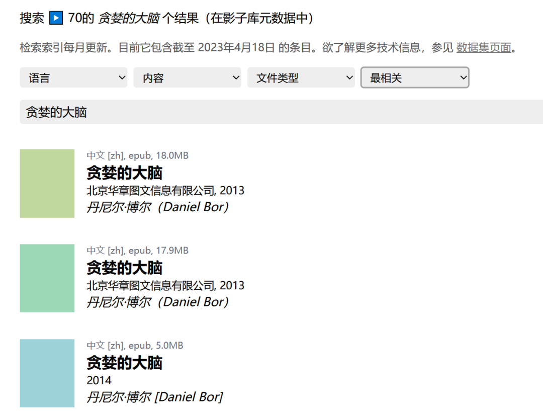 使用完全免费,搜索的时候,默认会检索界面上设定的语言资源,也可以在筛选功能里挑选语言版本和文件格式,另外它也有MD5搜索,这功能一般用得比较少,在一些图书资源论坛,分享巨量文件的时候会带上每个文件MD5,原分享地址失效就可以丢进来直接搜索。