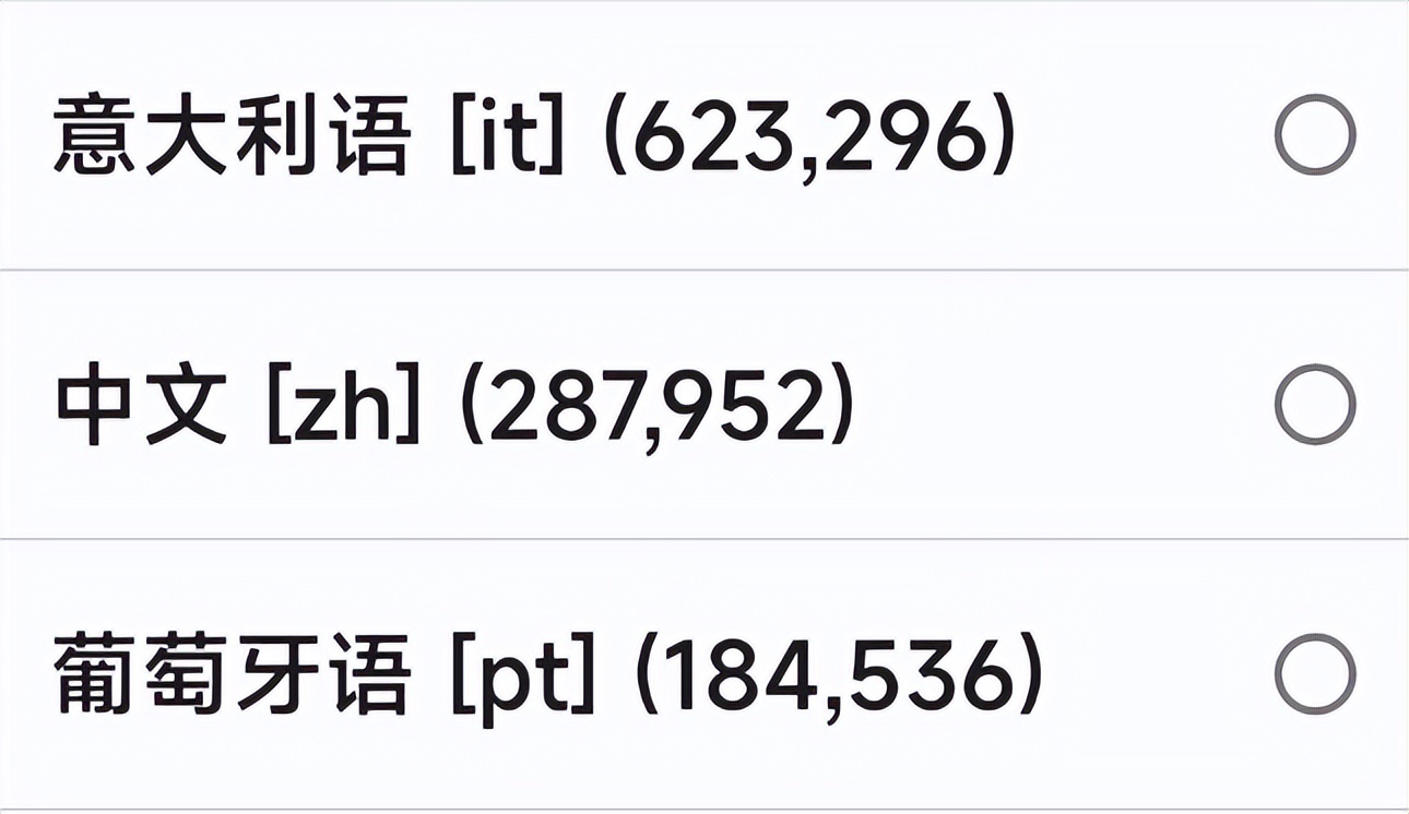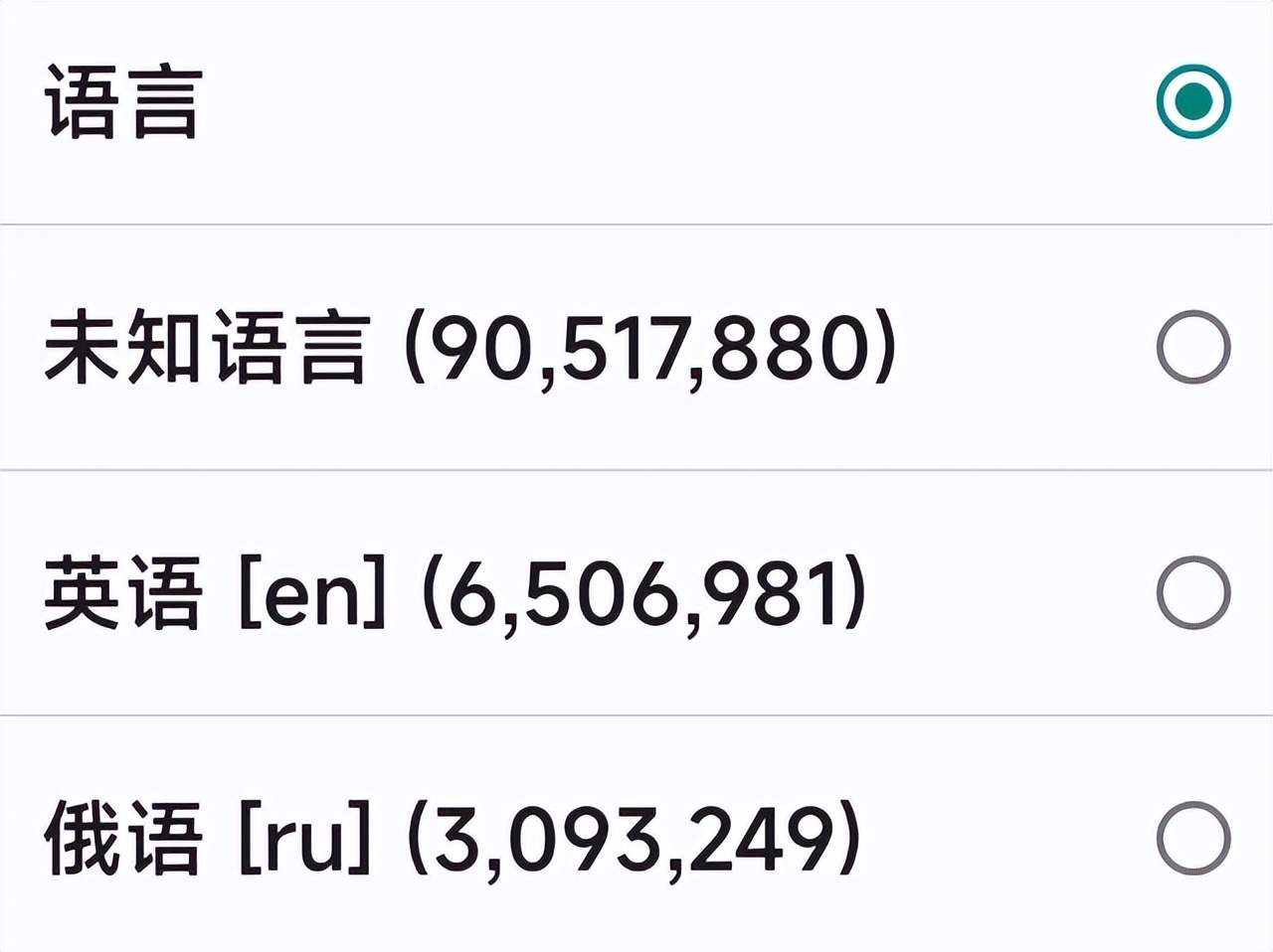 大多朋友还是冲着中文资源来,点开语言在书签中标记一下中文的数量即可,目前有287952个中文资源,当然全部资源不止这些 ,还有9000多万的资源,是没有标记语言的。