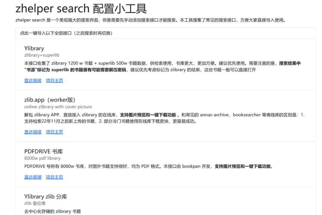 但其实相关的镜像站点一直都有,要找的话都能找到,以及许多的平替版本像是Clibrary一类的,还有些则是和手机APP“阅读”类似做法的 zhelper search 搜索工具 ,它本身不提供任何资源,需要结合资源API来使用。