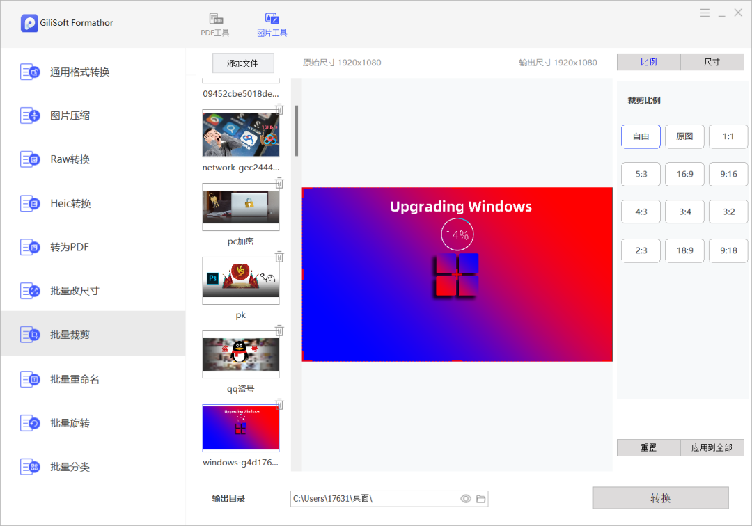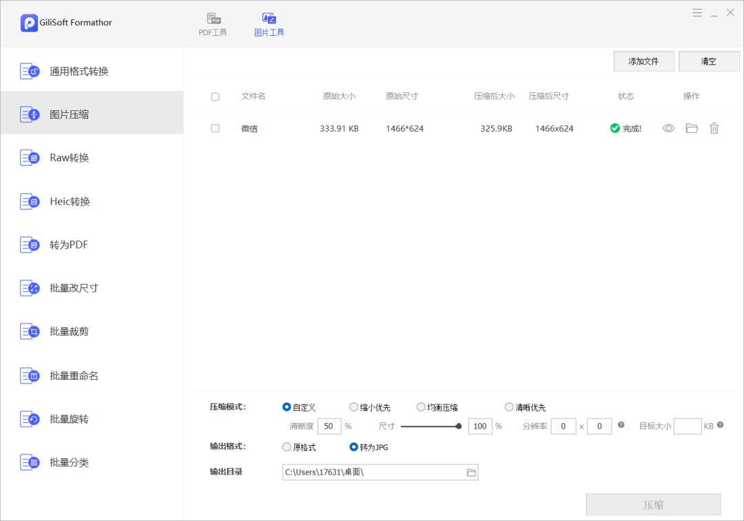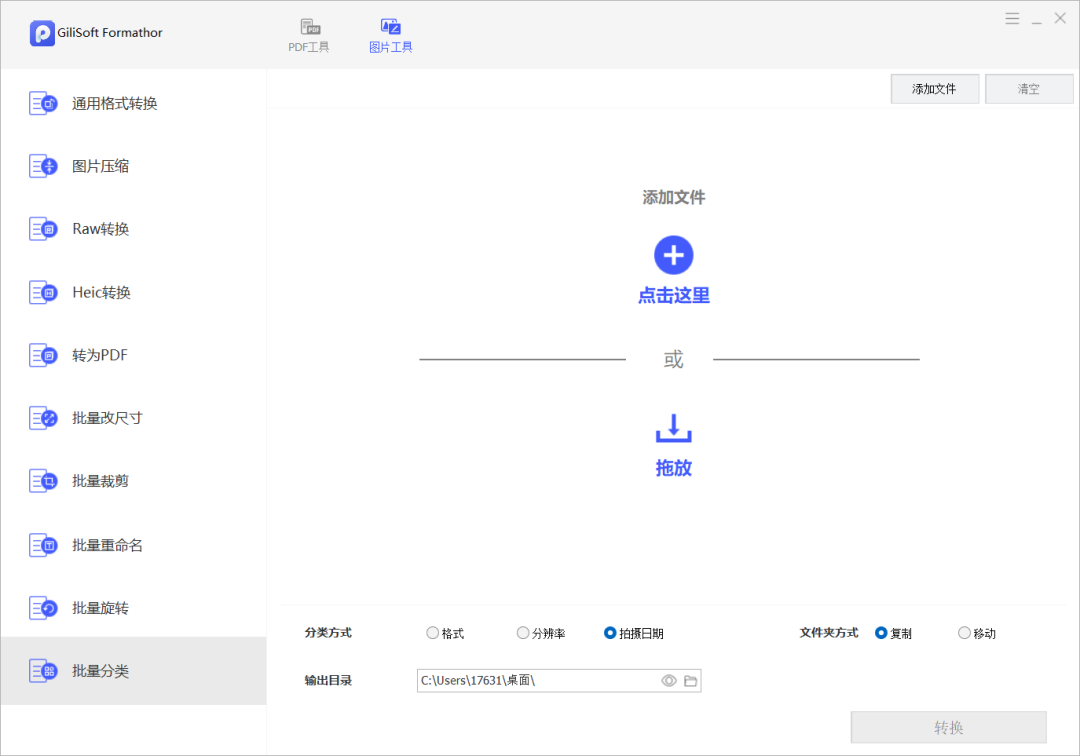 GiliSoft Formathor 的图片工具依然包含很多功能,图片批量转换、压缩、裁剪、重命名、旋转、分类……都是非常实用的功能。