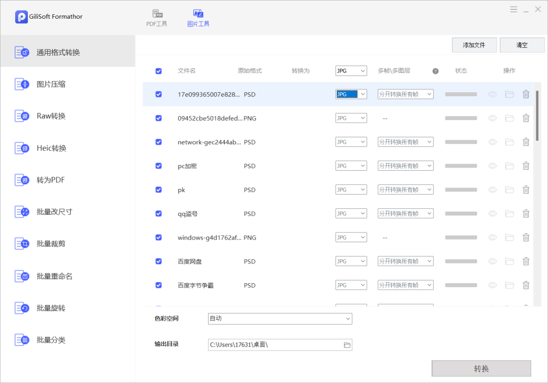转换图片支持的格式非常多,还有不常见的 raw 和 heic ,也都可以转换成普通图片格式。