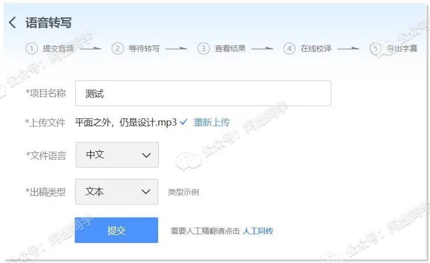 如果我们需要将视频或者音频转成文字,那么需要使用的是「语音转写」这个功能