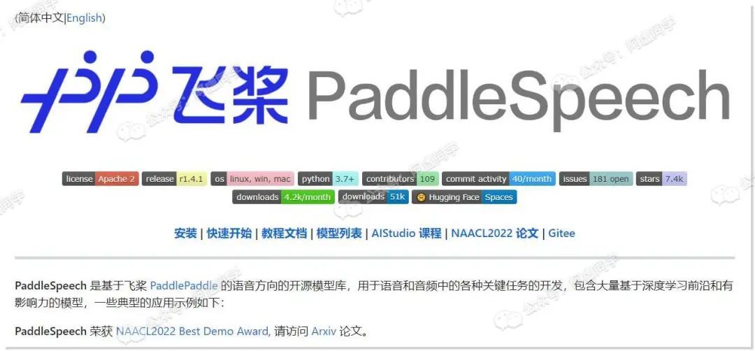 地址:https://github.com/PaddlePaddle/PaddleSpeech