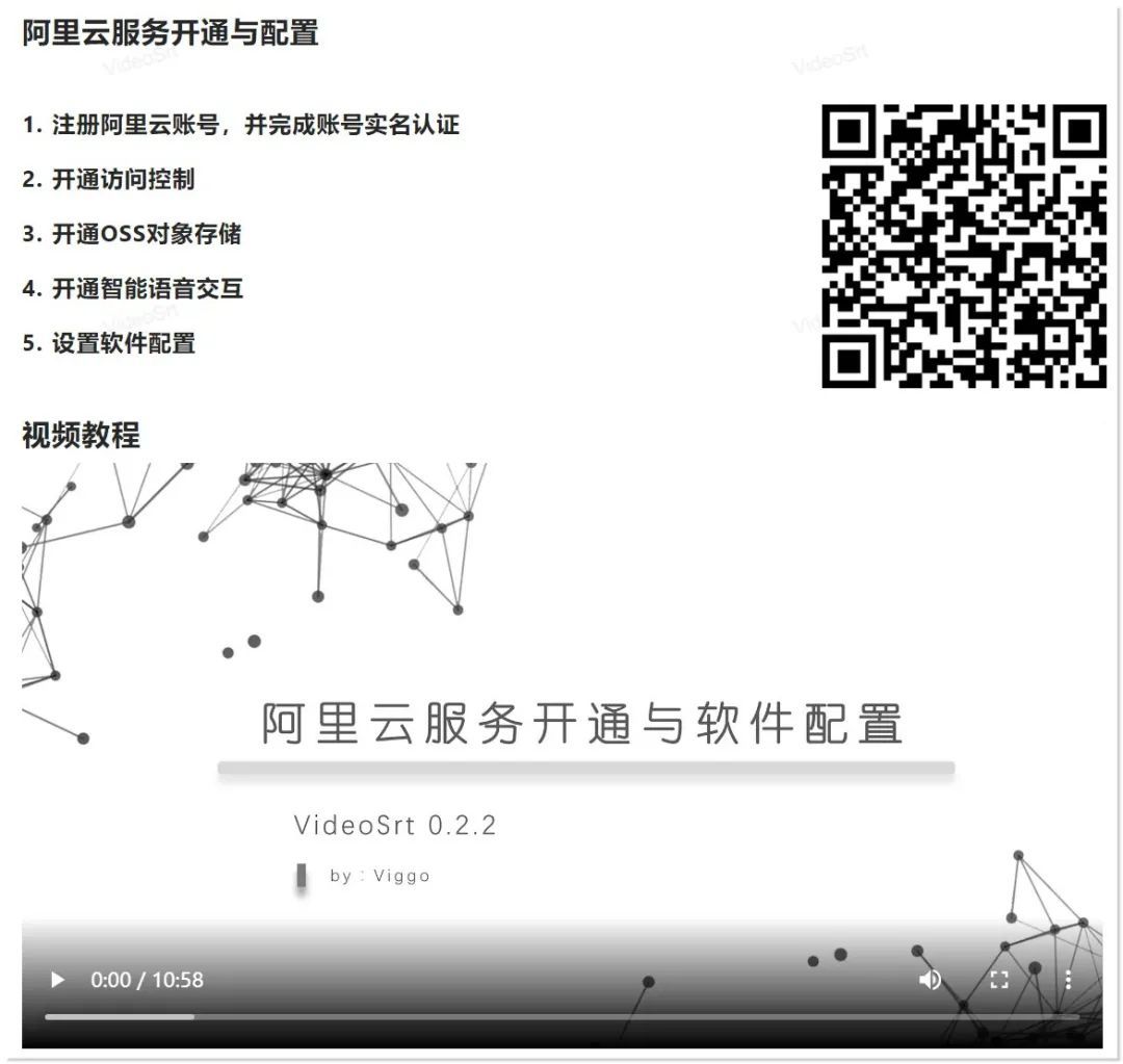具体 API 的申请&配置,作者做了长达10分钟的超详细视频教程,阿虚便不在此赘述了:https://www.yuque.com/viggo-t7cdi/videosrt/em4n10