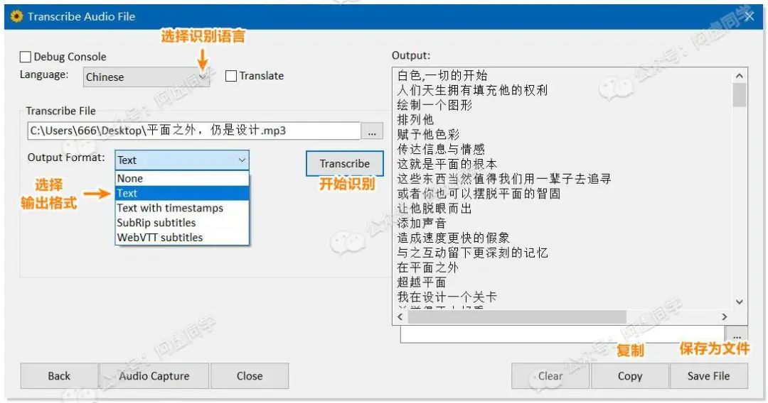 最终转换结果的话,会自动保存为软件目录的「音频转换结果」文件夹下的 txt 文件