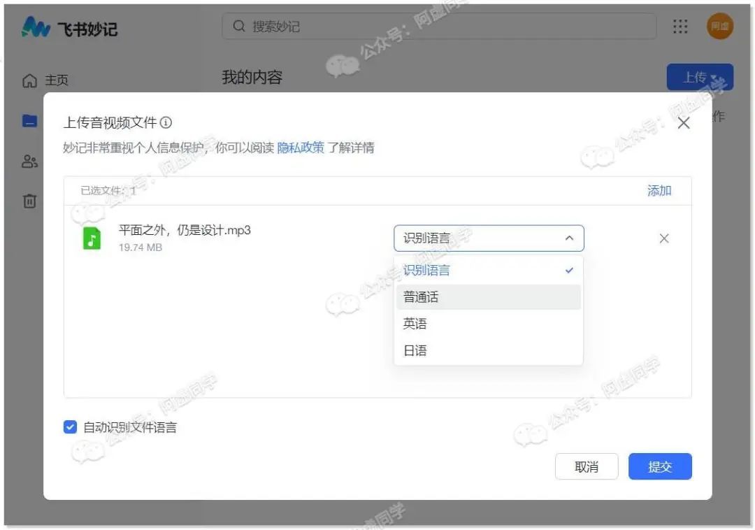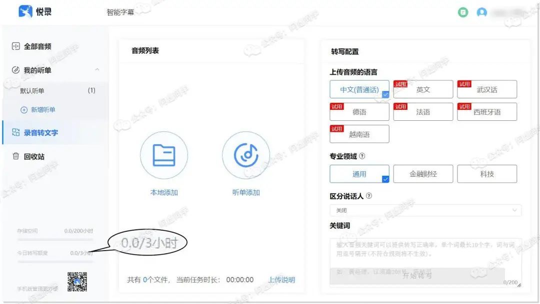 使用方法异常简单,注册登陆后,直接上传音频或者视频就能进行识别转换了,目前支持普通话、英语、日语