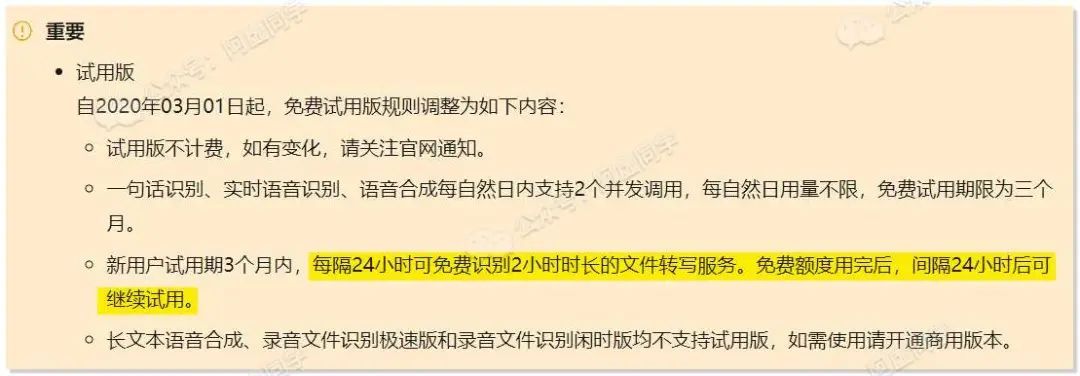 目前的话免费额度还是相当良心的,不仅支持上传录音文件,更是支持实时语音识别,对个人偶尔使用我觉得这个每月额度完全足够(实在不够你可以弄多个账号嘛)