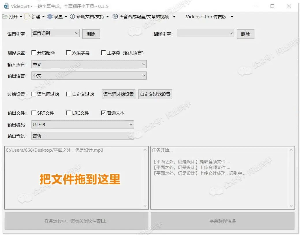 除了上述从网页端使用腾讯云语音识别,我们也可以利用字幕组机翻小助手这款开源软件来进行调用,使用没啥难度,把文件拖进去点击开始识别即可