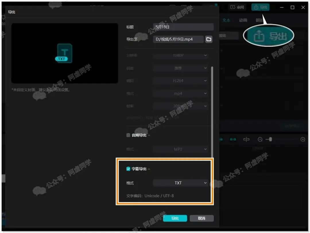 转换完成之后我们在右上角就能进行导出,可以仅保存字幕文件为 TXT 或者 SRT 文件