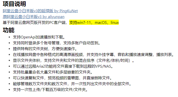 因此很多网友开始转用第三方工具:阿里云盘小白羊版,这是一款基于阿里云盘官方 API 开发的强大开源第三方客户端。