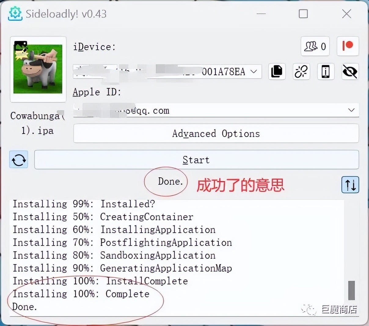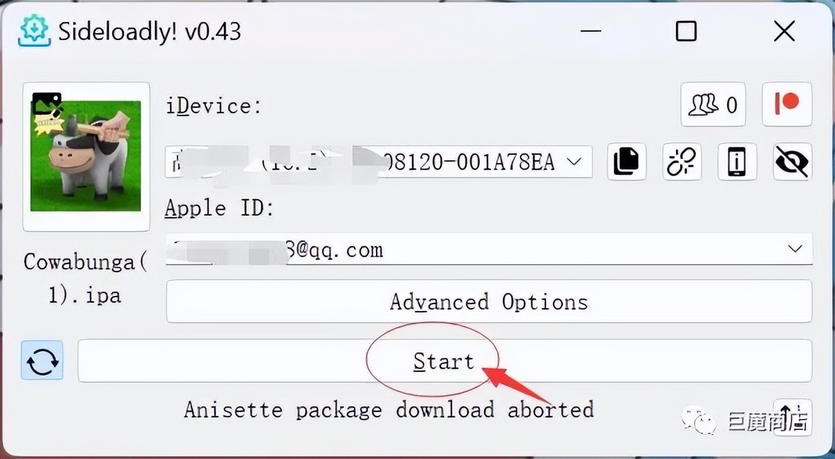 输入 Apple ID 后,Start 按钮会亮起,点击 Start 开始签名。