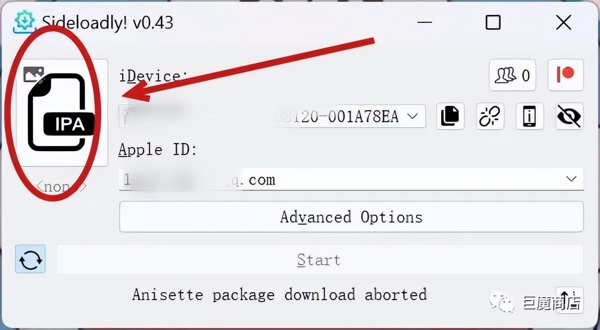 打开 Sideloadly,将你需要安装的ipa 文件,拖动到 Sideloadly 中的 IPA 框。注意,ipa 文件提前下载放在电脑上面!