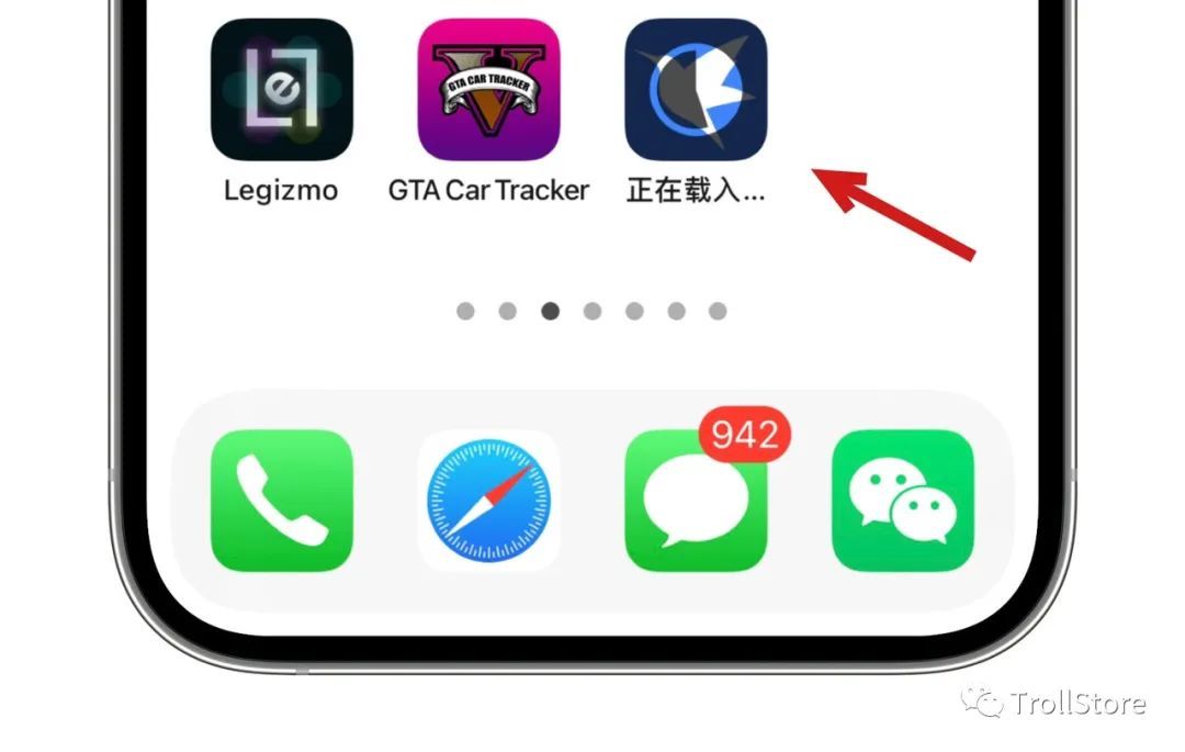 下载好以后,点击用其它应用打开,再选择用TrollStore 打开,接着再点击Install安装,就安装好降级工具了。