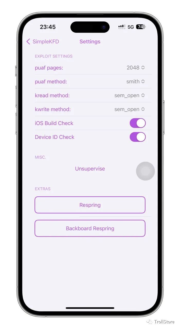 SimpleKFD,利用 kfd 漏洞的工具箱,集合多种功能,无需越狱,支持 iOS 15.0 – 15.7.6 系统,的全部设备。支持 iOS 16.0 – 16.5 系统,支持 iOS 16.6 Beta1 系统,仅限 A12 及以上设备。SimpleKFD目前刚发布不久,工具还不够稳定,有兴趣可以尝试一下。