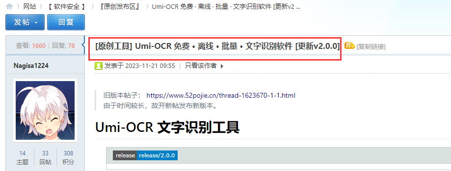 而今天要安利的另一款 OCR 识别软件「Umi-OCR」,源自吾爱论坛开发者“Nagisa1224”,在此之前也有安利过旧版本,现在时隔一年多,再次更新。