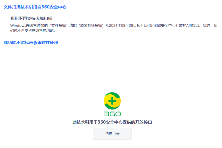 使用文件特征扫描技术,凡是命中风险特征的文件都会被警告,引用了 360 安全中心云病毒库,对文件进行扫描。