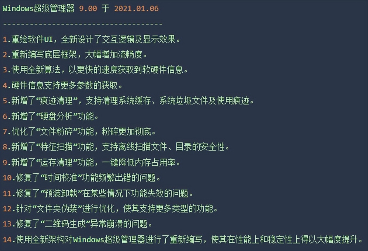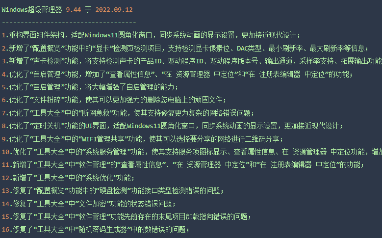 首先来看看 Windows 超级管理器 v9.45 最新版本更新日志: