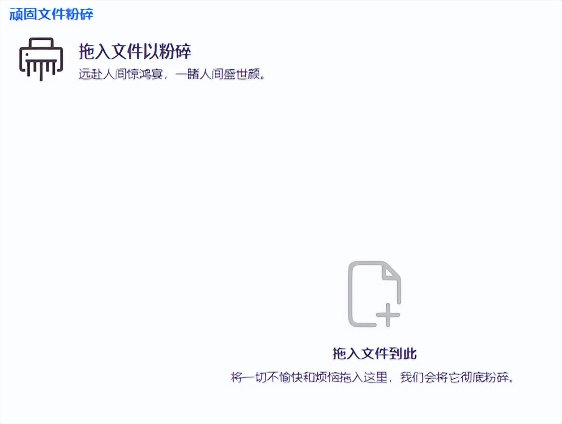 有时候想要删除某个文件/文件夹,但是无法访问删除,而这个文件粉碎功能,只需要将顽固的文件/文件夹直接拖拽进窗口即可粉碎。