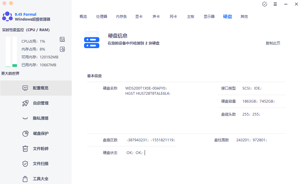 Windows 超级管理器是一款免费功能强大的系统管理软件,提供全面的系统检测,如 CPU 实时监控,电脑垃圾处理,自启动管理,文件粉碎,可高效地查看及了解计算机参数配置,而且附带众多实用的工具功能。
