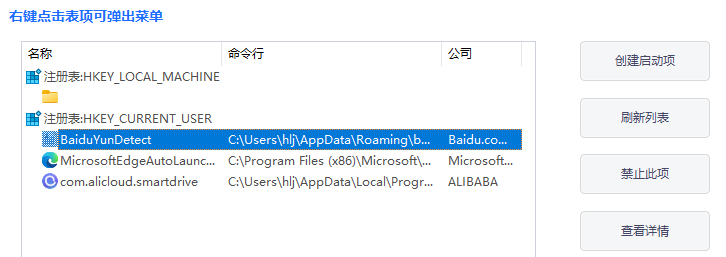 点击可以禁止、修改,同时也可以创建启动项。