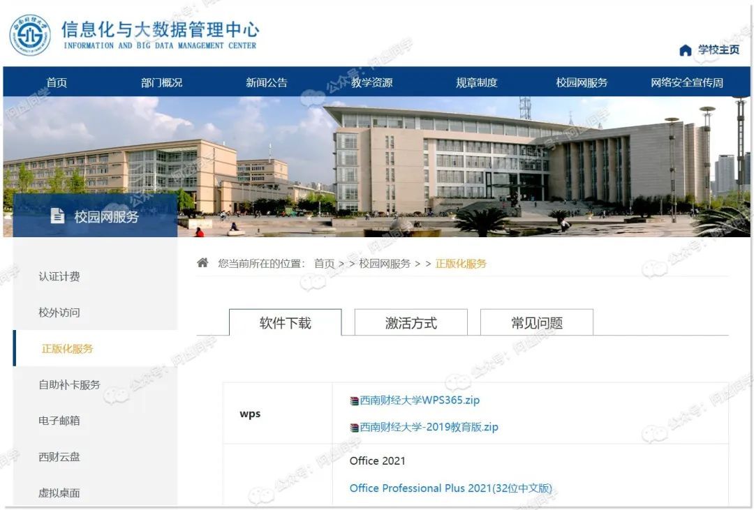 西南财经大学官网提供了两个WPS版本,一个是WPS 365,一个是WPS 2019教育版