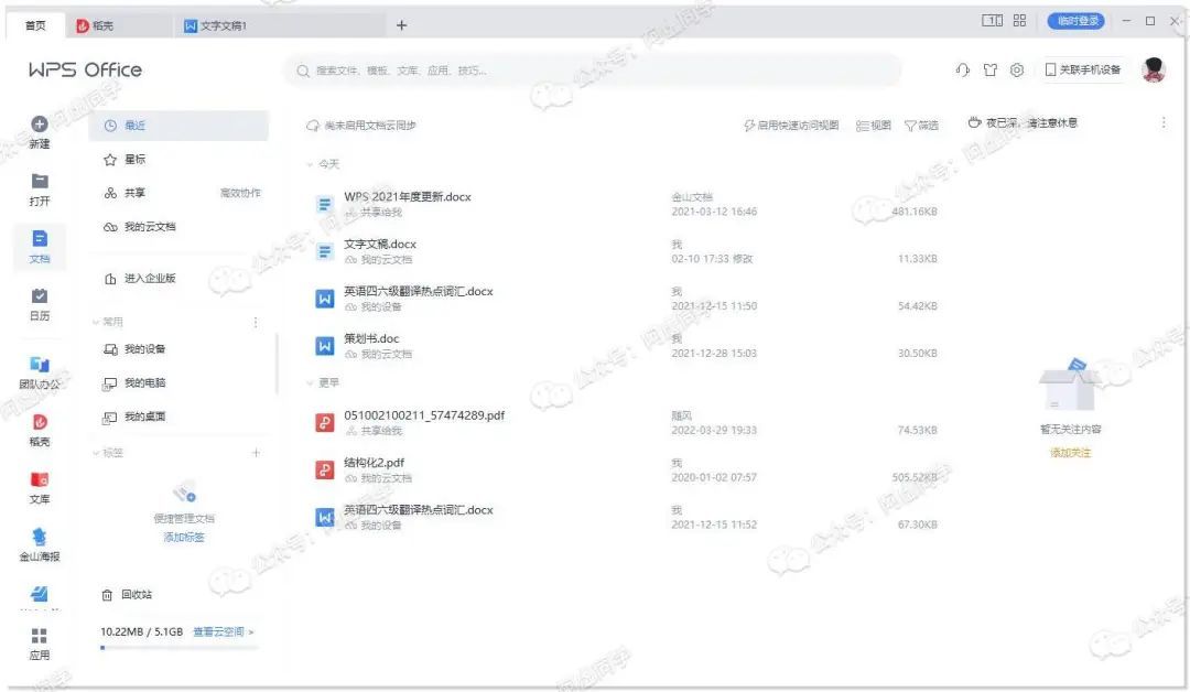 可正常登录使用WPS云文档功能,无授权时间限制