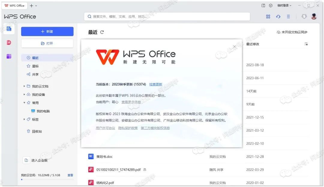 缺点是无法使用WPS云文档功能,虽然官网说明授权时间至2022年底,但打开后实际授权时间为永久无限制
