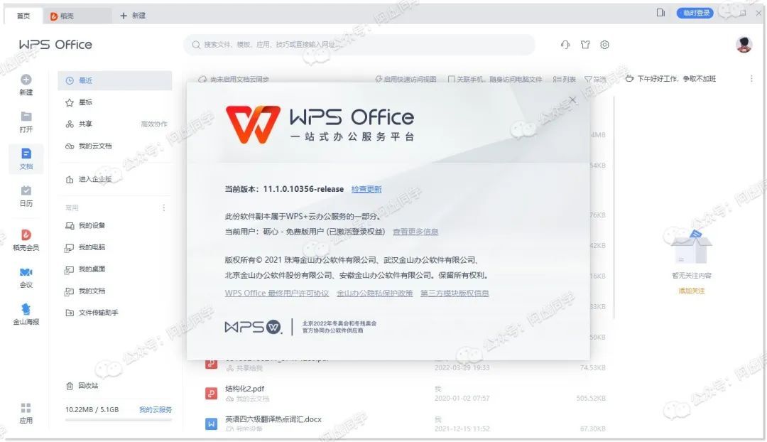 然后这个版本可正常使用WPS云文档等各种功能,同时未见授权到期时间,应该是长期有效