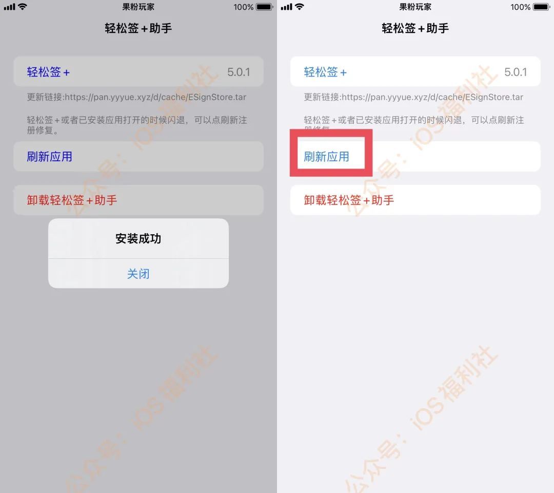 如果轻松签+安装的应用打不开,或者轻松签+本身打不开,点击这里的”刷新应用”,即可恢复正常。