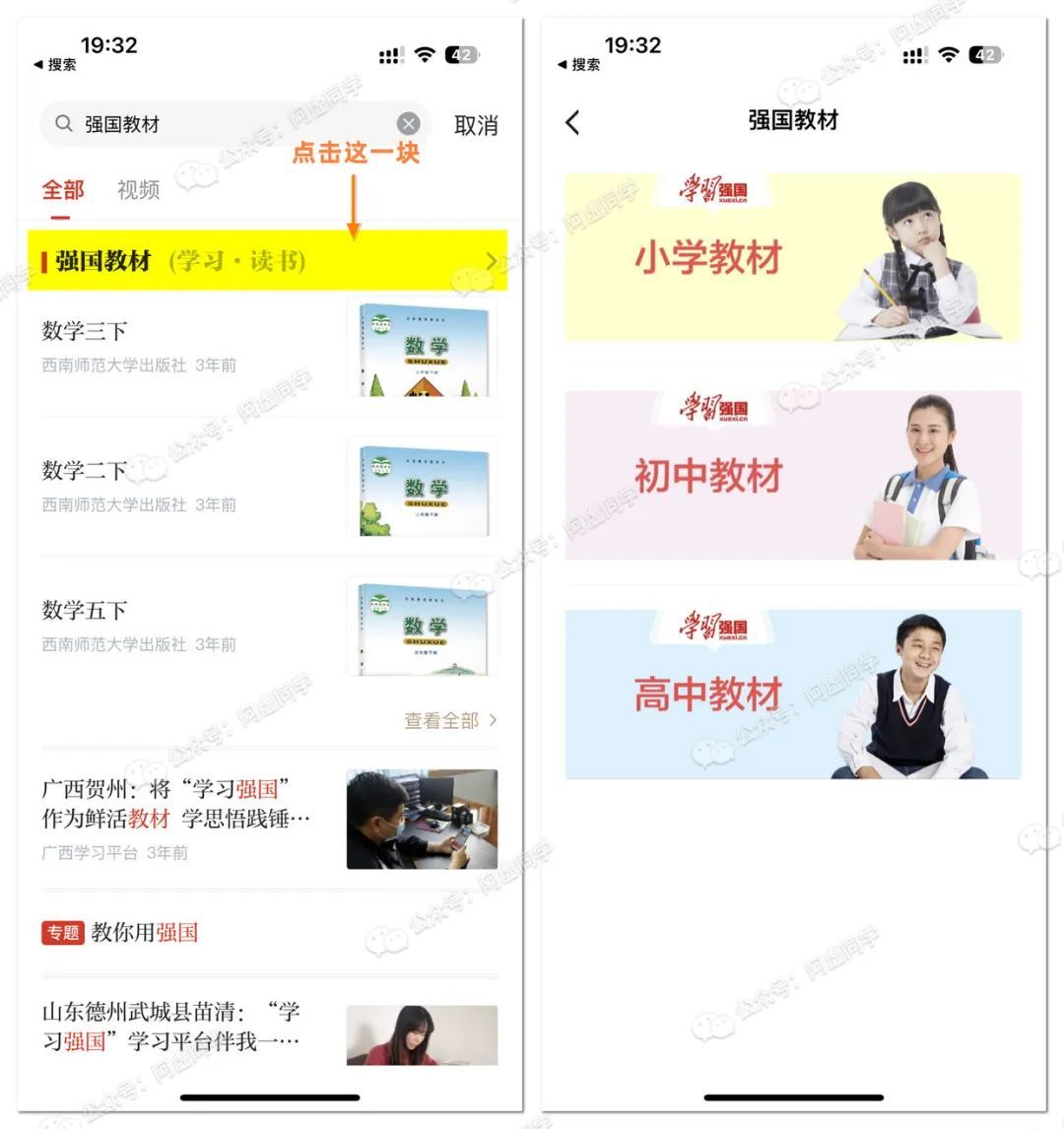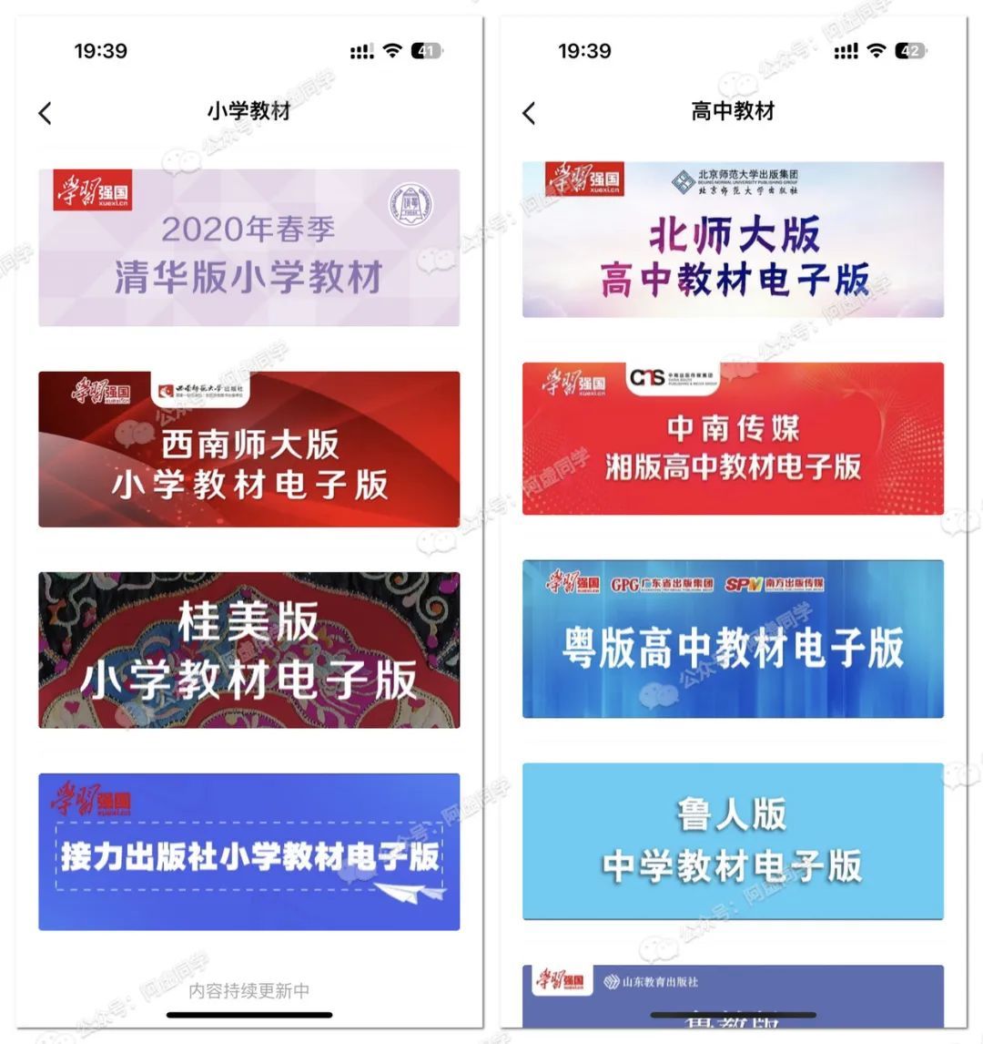 阿虚在之前的文章多次有提到学习强国 APP 内同样早就有免费给我们提供免费的中小学教材