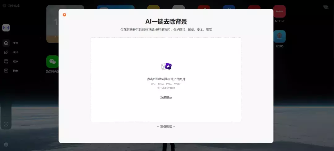只需要把需要处理的图片上传至窗口中,等待AI完成自动抠图就行了。