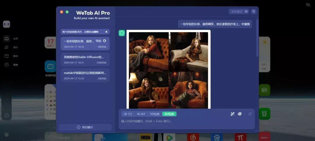 ▶ WeTab AI(GPT聊天+SD/MJ绘画)