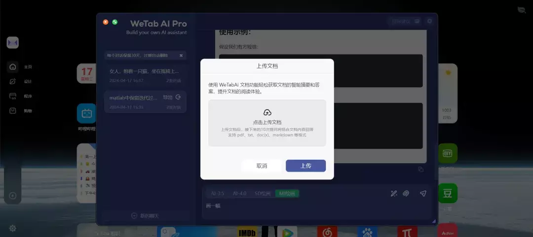 另外,WeTab AI还配有万众期待的文档解析功能,支持上传pdf、txt、doc(x)、markdown等文件。