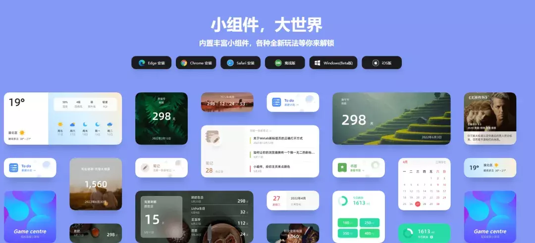 WeTab的小组件库相当丰富,除了AI生产力工具外,还有一系列实用又美观的小组件。