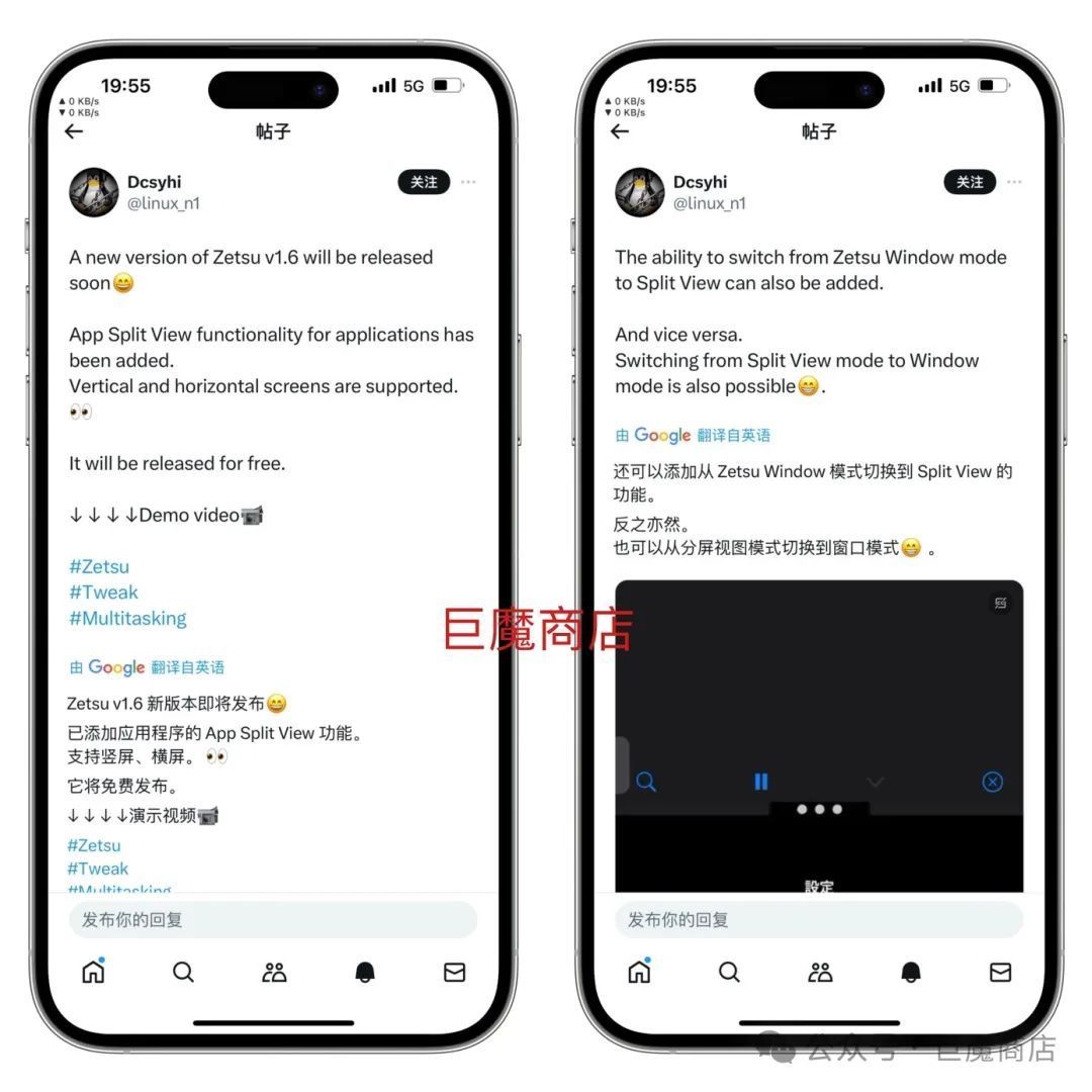 今日,作者 Dcsyhi 再发进度,Zetsu 可以从窗口模式分屏,切换到 Split View 模式分屏。随意切换。