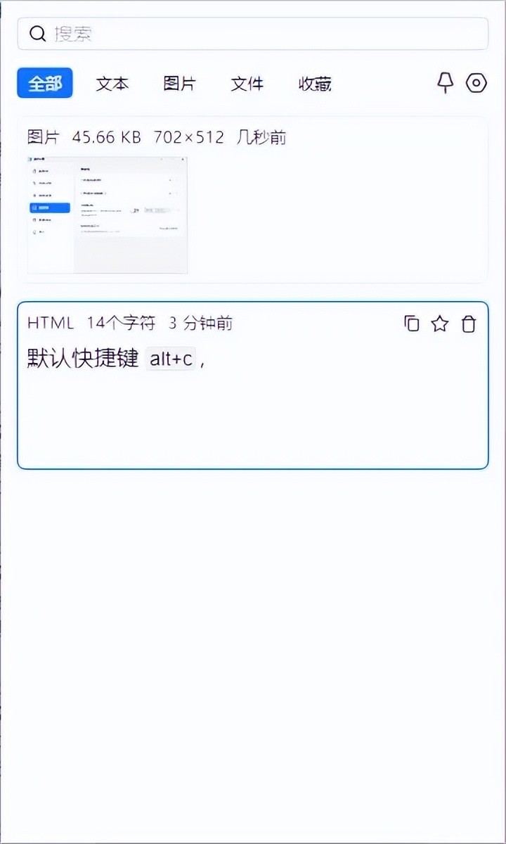 - 剪贴板唤醒:使用自定义快捷键唤醒 EcoPaste,查看最近的复制历史,默认快捷键 alt+c。