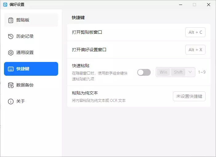 - 后台运行与快捷唤醒:支持自定义快捷键随时唤醒,帮助快速调用复制的内容。